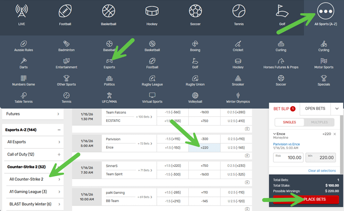 Step 3. Place Your Esports Bets