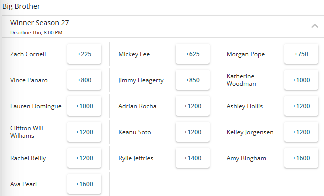 Here are the odds for the Big Brother Season 27 winner at the time of this articles update (odds taken on July 22nd, 2025):