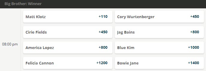 BetOnline is one of the only sportsbooks serving the US market that offers Big Brother betting markets every summer.