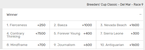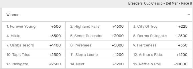 Breeders Cup Classic Morning Line Odds