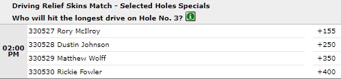 BetOnline.ag is our top rated betting site for wagering on the Driving Relief skins match. BetOnline is a popular and trusted betting site that accepts players from across the United States (no state restrictions). They have a huge selection of prop betting options available for the McIlroy-DJ vs Fowler-Wolff skins match.