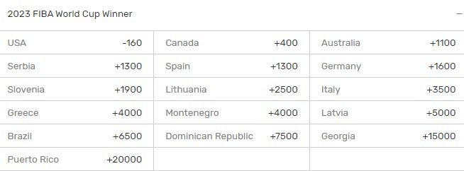 FIBA World Cup Winner Odds