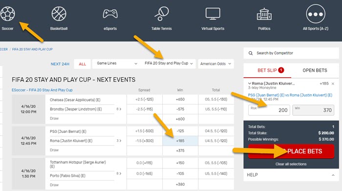 Follow these three steps to get your bets placed on the FIFA 20 Stay and Play Cup tournament from anywhere in the US.