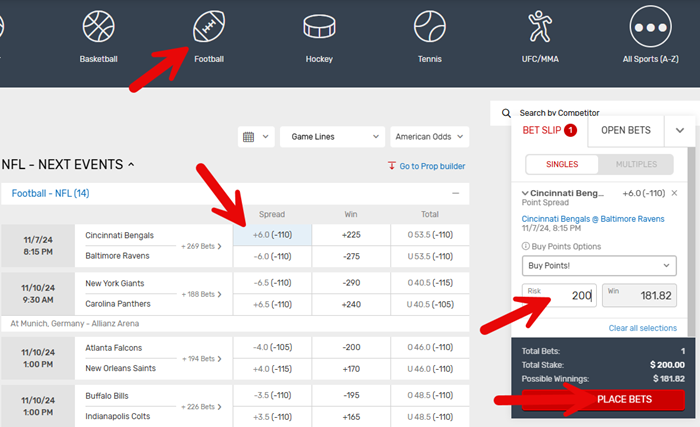 Step 3. Place Your Football Bets