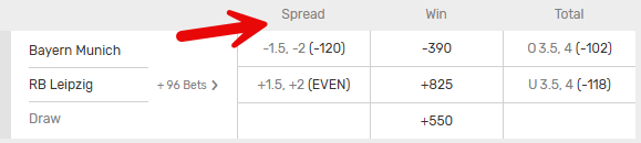 The spread for the below match has Bayern Munich as 1.75 goal favorites. Bayern Munich would need to win by 3 or more goals for bets on Bayern -1.75 to payout fully.