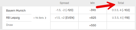 In this example the total is set at 3.75, so over bets would win the entire amount if 5 or more goals are scored, while under bets would win if 3 or fewer goals are scored.