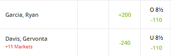 Gervonta Davis is the favorite with odds of -240, while Garcia is the underdog with odds of +200. The over/under is set at 8.5 rounds. The odds will likely change as we approach fight night. To see the current odds on the BOL website open the ‘Other Sports’ and ‘Boxing’ drop down menus and select ‘Bouts’.