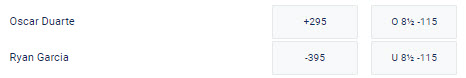 Ryan Garcia is the favorite with odds of -395, while Duarte is the underdog with odds of +295. The over/under is set at 8.5 rounds. The odds could change as we approach fight night. To see the up to date odds on the BetUS website select ‘Boxing’ from the sports menu in the Sportsbook, select ‘Fight Lines’ and scroll to December 2nd.