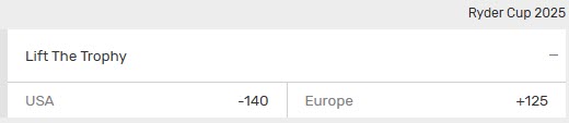 Here are the odds to lift the trophy for the 2025 Ryder Cup (odds from September 24th). Team Europe will retain the trophy in the event of a tie because they are current champions: