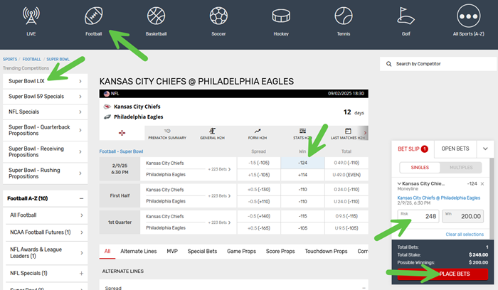 Step 3. Place Your Super Bowl Bets