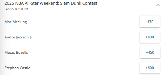 Mac McClung is the favorite to threepeat as Slam Dunk Champion. McClung impressed the past two years, winning the Dunk Contest both years, and he will once again bring a lot of fanfare making it difficult for one of other competitors to take his spot as champion. That said, I still think these other guys are top end athletes who will have prepared some impressive dunks that could get the crowd on their side.