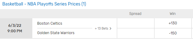 Here are the series winner odds at Bovada.lv (odds accurate as of June 2nd). These odds will change throughout the series and you can find the up to date odds at the Bovada website by opening the ‘All Basketball’ drop down menu in the sportsbook and selecting ‘NBA Finals Series Prices’.