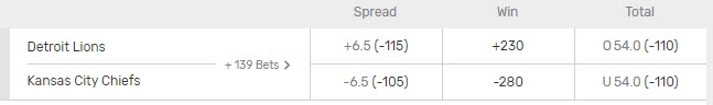 The spread odds are shown in the first column of the screenshot above. In this example the Philadelphia Eagles are -8.5 point favorites at home.