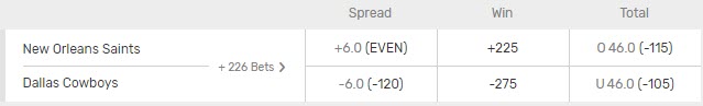 Below I will look at the odds from the season opening game between the Philadelphia Eagles and Dallas Cowboys, and explain the three most popular NFL individual game bets: spread, money line and total.