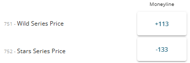 Here’s a screenshot of the odds for the Minnesota Wild vs Dallas Stars series.