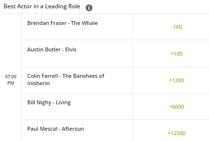 To see all of the up to date Oscars odds head to BetOnline.ag, open the ‘Entertainment’ drop down menu and select ‘Oscars’.