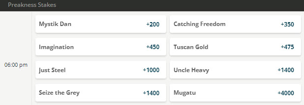 Here is a screenshot of the fixed winner odds (taken May 16th – the day before The Preakness):