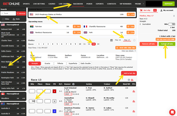 Follow these three steps to get your Preakness Stakes placed online before the race.