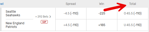 The total is set at 45.5 for the Super Bowl. If you think 46 or more points will be scored by both teams (combined) you should bet the over, and if you think 45 or fewer points will be scored you should bet the under.