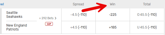 The money line odds have the Seahawks as -225 favorites, which means a $225 bet on Seattle to win the game would win $100 (pays $325).
