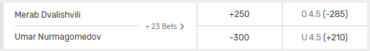 Here’s an example of the ‘to win’ and total rounds odds for the Merab Dvalishvili vs Umar Nurmagomedov bantamweight title fight at UFC 311: