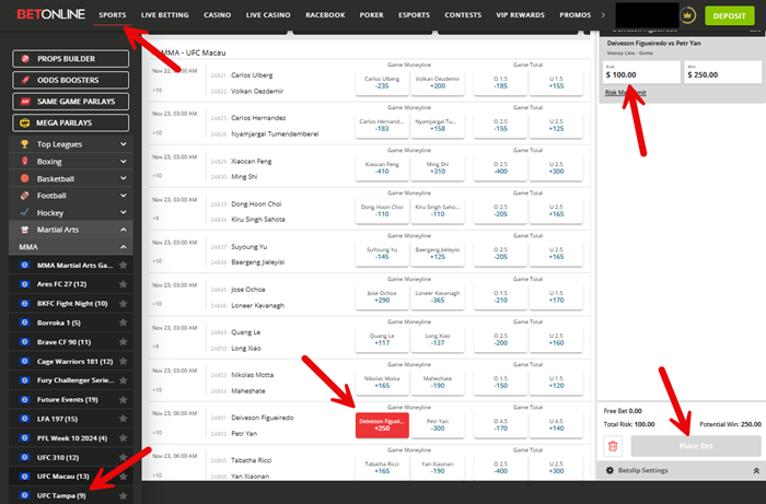 Follow these steps to place your UFC bets online from anywhere in Massachusetts or Connecticut.