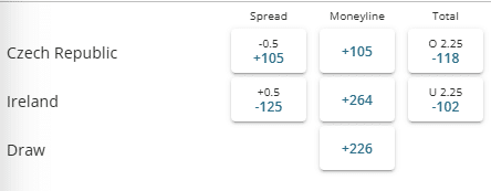 Here is a screenshot from the Czech Republic vs Ireland qualifying game from the second round of UEFA World Cup qualification (odds from November 24th, 2025):
