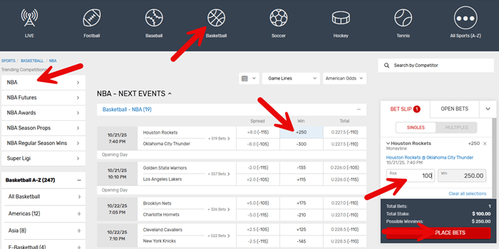 - A simple 3 step guide you can follow to get your NBA bets placed online.
