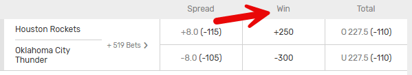Here’s a screenshot of a bet on the Rockets money line from their game vs the Thunder as an example:
