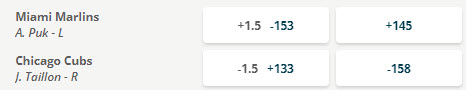 The Marlins are +145 underdogs, so a $100 bet on the Marlins would win $145 (payout $245) if they pulled off the upset. You could also bet the Marlins run line bet at odds of -153. That bet would win $100 for every $153 wagered if the Marlins either won the game or lost by 1 run.
