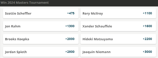 If Scheffler won this particular tournament then a $100 wager on Scheffler would win $475, while if Koepka pulled out the victory a $100 wager on him would win $2000.
