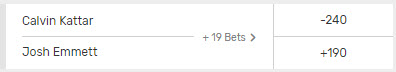 - Method Of Victory – A bet on which fighter will win PLUS how they will win. For example, you could bet on Fiziev to win by knockout.