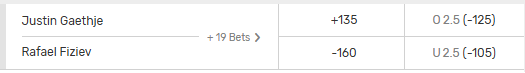 - Round Betting – A bet on which fighter will win PLUS which round they will win in. For example, you could bet on Fiziev to win in round 2.